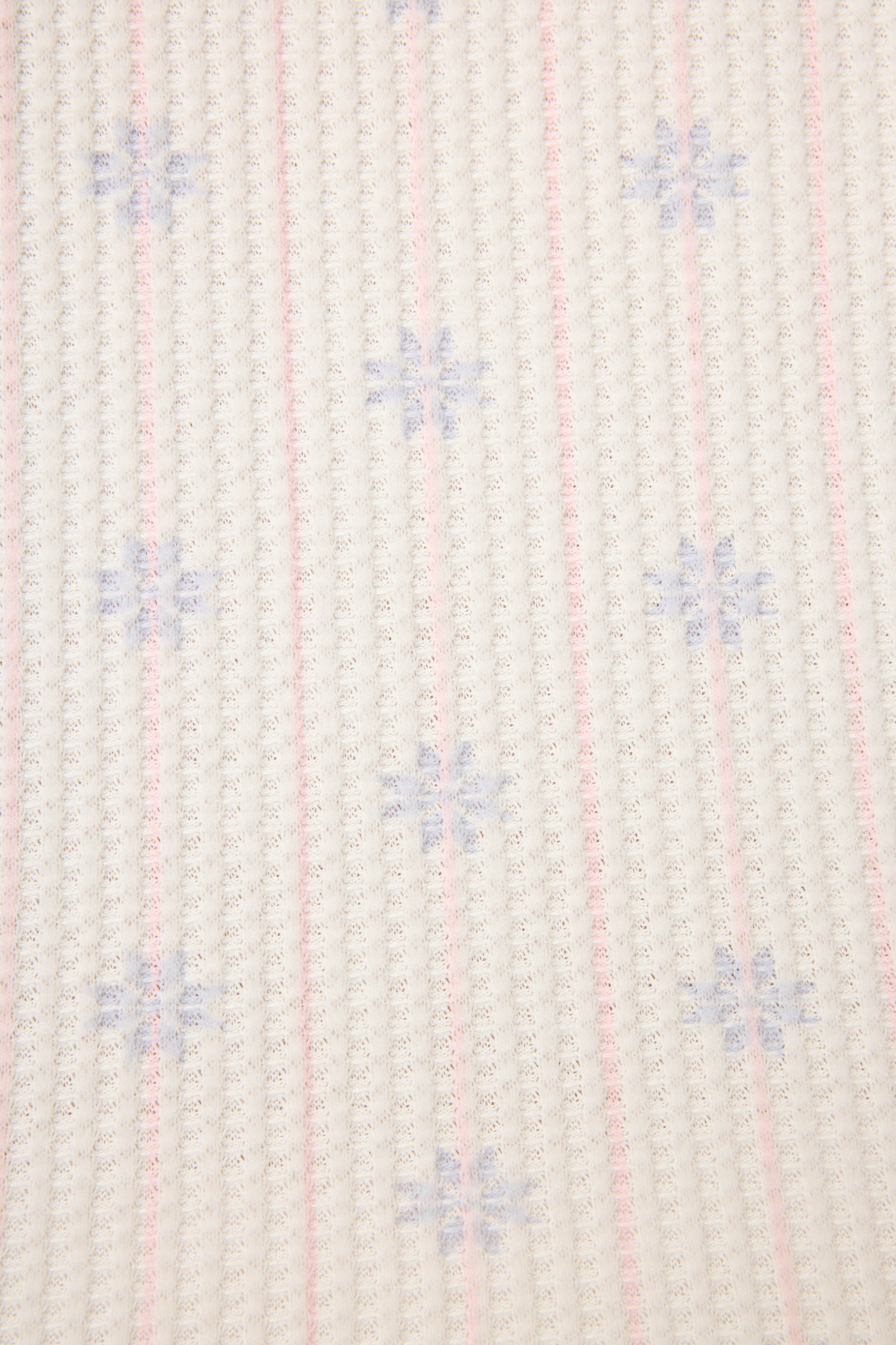 DESCRIPTION:  Women’s ivory pajama set with snowflake print, henley long sleeve top, and jogger pants in brushed thermal fabric.