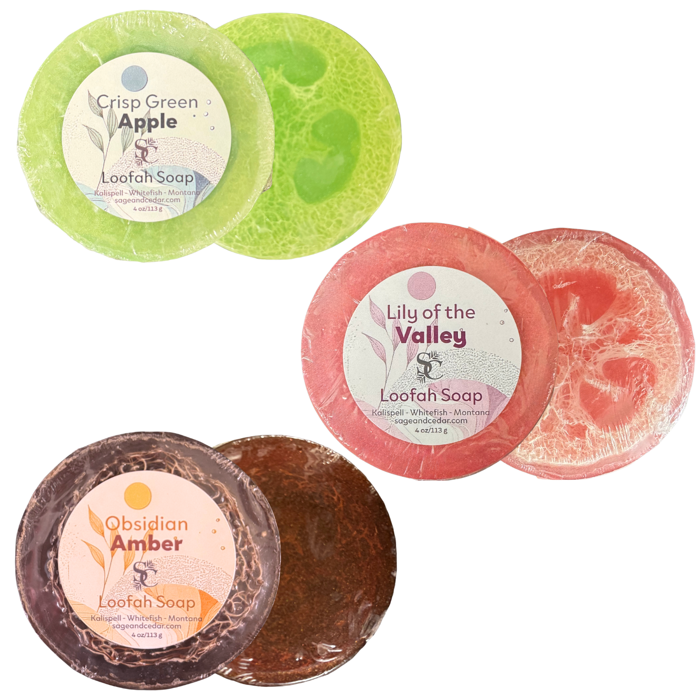 Rich moisturizing glycerin soap surrounds a natural exfoliating loofah to gently cleanse while leaving your skin smooth and hydrated.