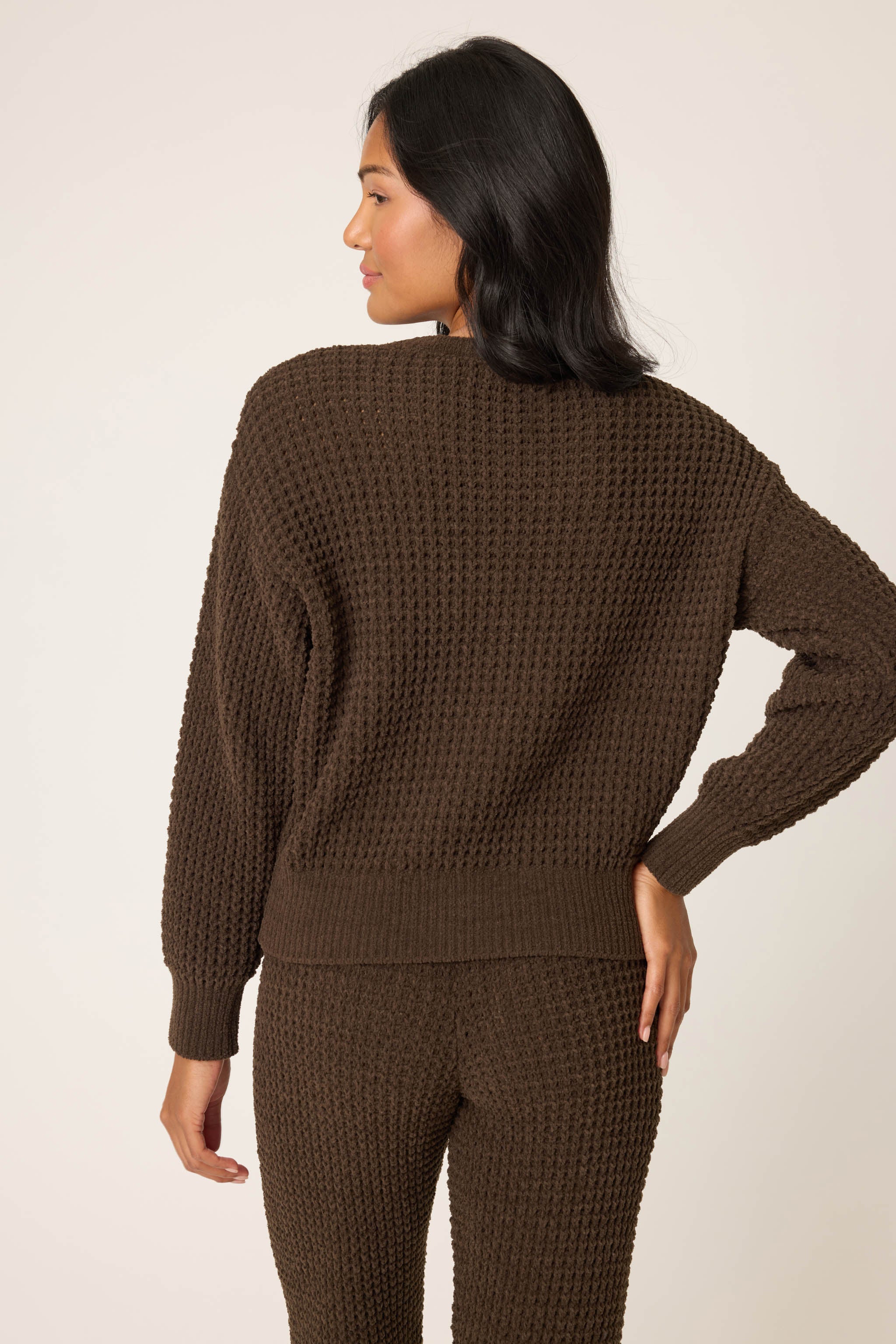Cozy Chenille Waffle Long Sleeve Top - Chocolate